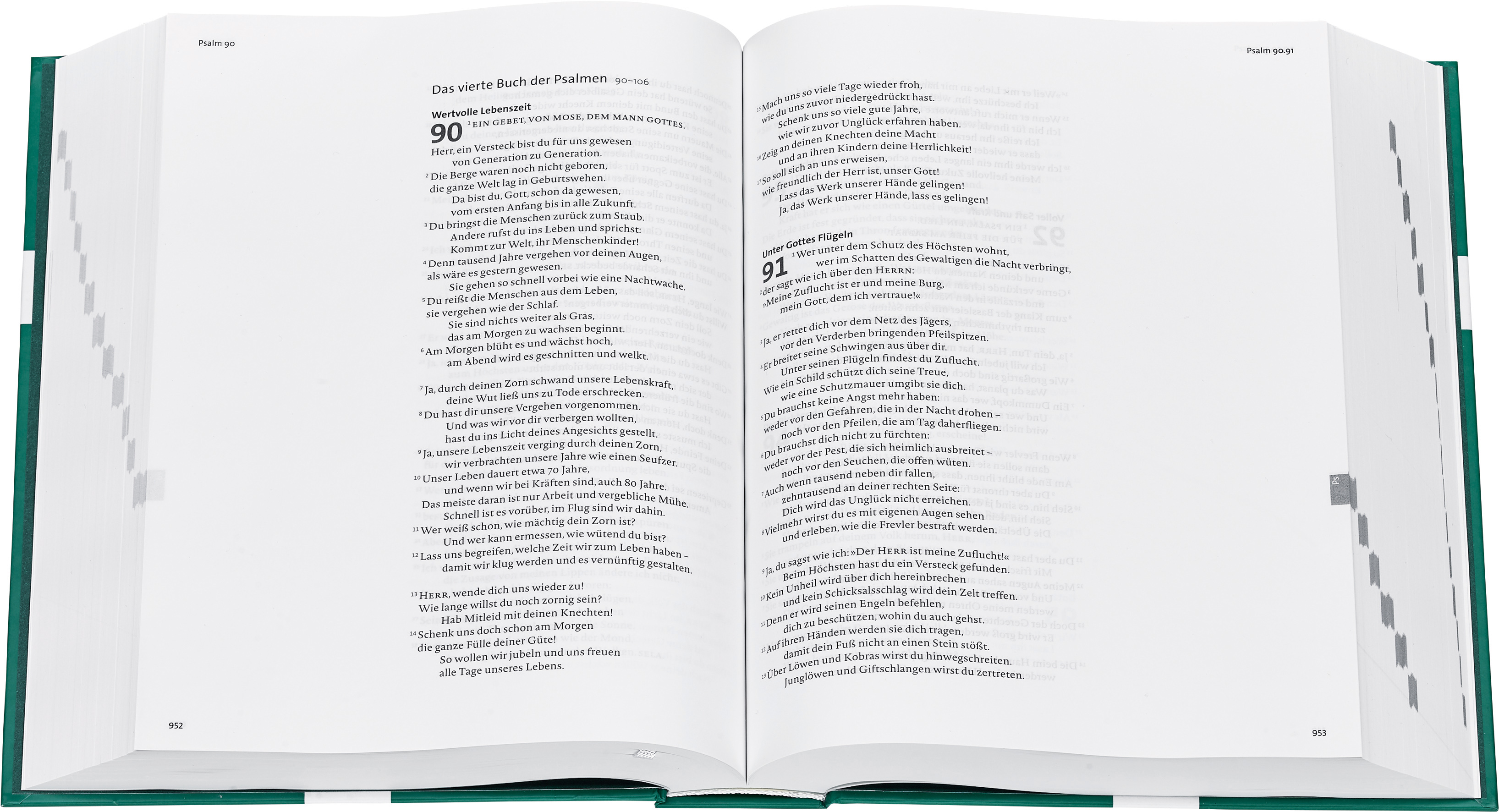 Auf vielfachen Wunsch erscheint diese sogenannte "Schreibrand"-Ausgabe der BasisBibel. Durch das Großformat 17,5 x 22,5 cm und den Verzicht auf die Erläuterungen in den Randspalten ergibt sich jeweils links oder rechts vom in der Buchmitte platzierten Bibeltext ein Platz von ca. 7 cm für persönliche Kommentare, Einträge und Bemerkungen. Oben und unten beträgt der Abstand zum Papierrand ca. 2,5 cm. So ist diese Ausgabe der BasisBibel bestens geeignet Bibel für die intensive persönliche Beschäftigung mit den biblischen Texten oder ein idealer Begleiter für das Studium.