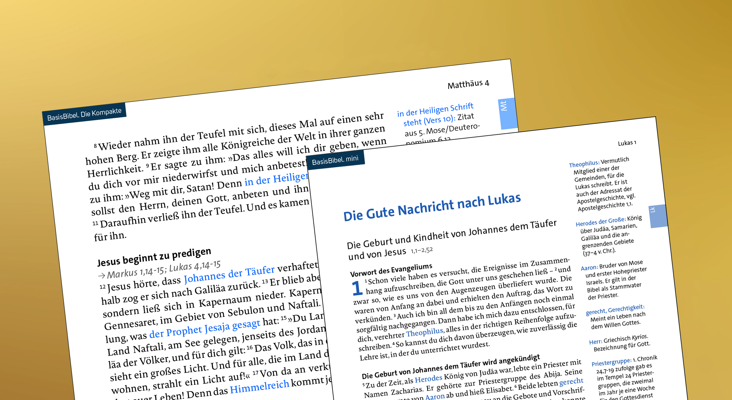 - BasisBibel: einfach zu lesen und gut zu verstehen. Inkl. Worterklärungen am Rand!