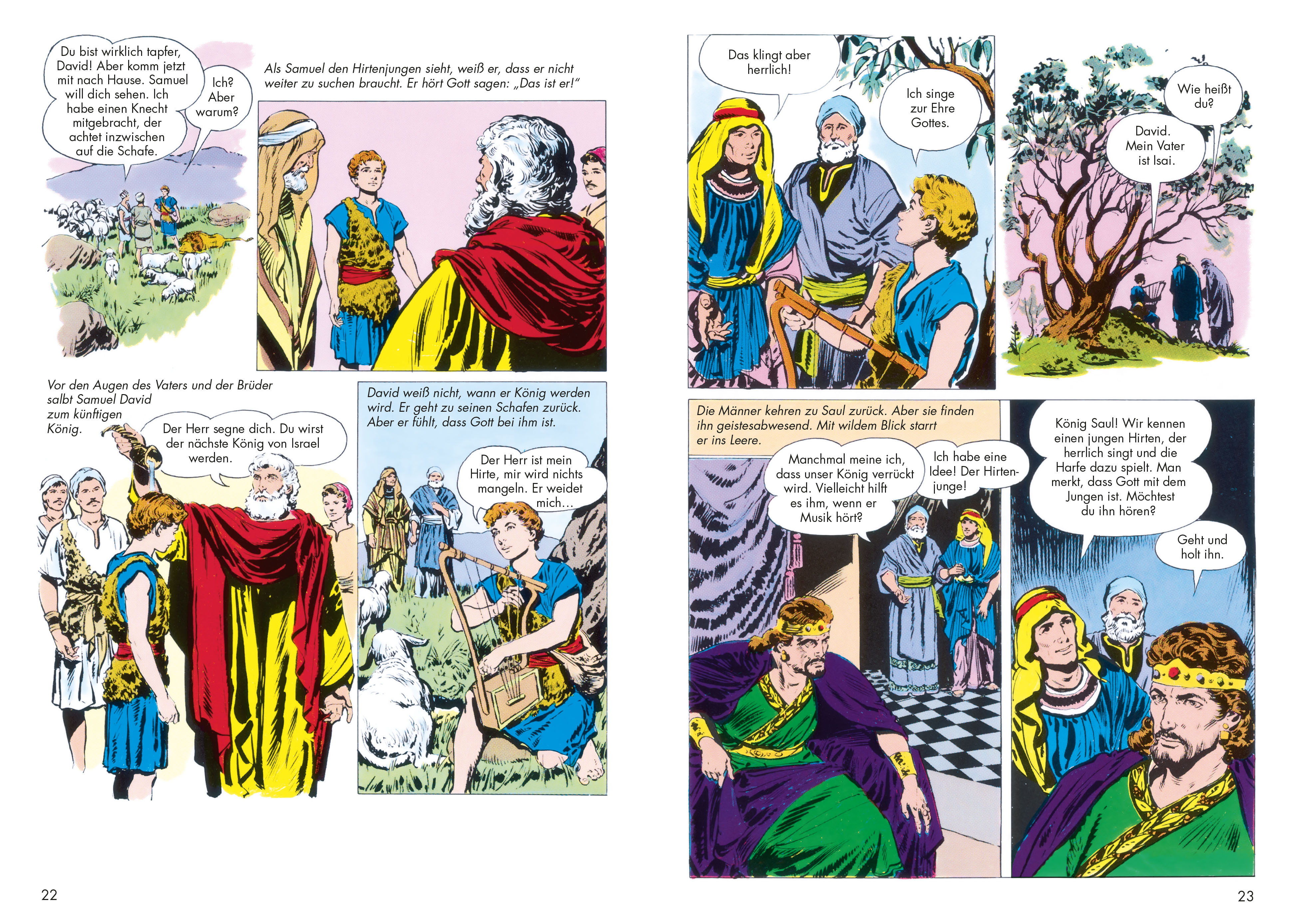 Die Ausgaben der Reihe »Die Bibel im Bild« sind die Klassiker der Bibel-Comics. Das Comic-Heft 5 enthält:Die Stimme eines Toten - 1. Samuel Kapitel 28, Vers 11-25; 1. Samuel Kapitel 31, Vers 1-6; 1. Samuel Kapitel 30, Vers 1-3Auf der Spur der Plünderer - 1. Samuel Kapitel 30, Vers 1-11Nachricht von der Front - 1. Samuel Kapitel 30 bis 2. Samuel Kapitel 1, Vers 1-3Konkurrenten - 2. Samuel Kapitel 1, Vers 2 bis 2. Samuel Kapitel2, Vers 9Verrat und Rache - 2. Samuel Kapitel 2, Vers 12; 2. Samuel Kapitel 3, Vers 25Die Verschwörung - 2. Samuel Kapitel 3, Vers 26 bis 2. Samuel Kapitel 4, Vers 5Es lebe der König - 2. Samuel Kapitel 4, Vers 6 bis 2. Samuel Kapitel 5, Vers 4Unterirdischer Angriff - 2. Samuel Kapitel 5, Vers 5-9Der Plan des Feindes - 2. Samuel Kapitel 5, Vers 7-22Die mächtige Stadt - 2. Samuel Kapitel 5, Vers 22-25; 2. Samuel Kapitel 5, Vers 10-11Gottes Versprechen - 2. Samuel Kapitel 6 bis Kapitel 9, Vers 5; 1. Chronik Kapitel 13, 15 und 16Die Verführung - 2. Samuel Kapitel 9, Vers 6 bis 2. Samuel Kapitel 11, Vers 14Davids Sünde - 2. Samuel Kapitel 11, Vers 14-27Die Strafe - 2. Samuel Kapitel 12, Vers 1-14Die Flucht - 2. Samuel Kapitel 12, Vers 15 bis 2. Samuel Kapitel 13, Vers 29Befehl eines Prinzen - 2. Samuel Kapitel 13, Vers 30 bis 2. Samuel Kapitel 14, Vers 30Verrat? - 2. Samuel Kapitel 14, Vers 31 bis 2. Samuel Kapitel 15, Vers 4Aufstand - 2. Samuel Kapitel 15, Vers 7-13Kriegsrat - 2. Samuel Kapitel 15, Vers 13 bis 2. Samuel Kapitel 17, Vers 13_____________________________________________________________Bei Fragen zur Produktsicherheit wenden Sie sich bitte an:Deutsche BibelgesellschaftBalinger Str. 31 A70567 Stuttgartproduktsicherheit@dbg.de