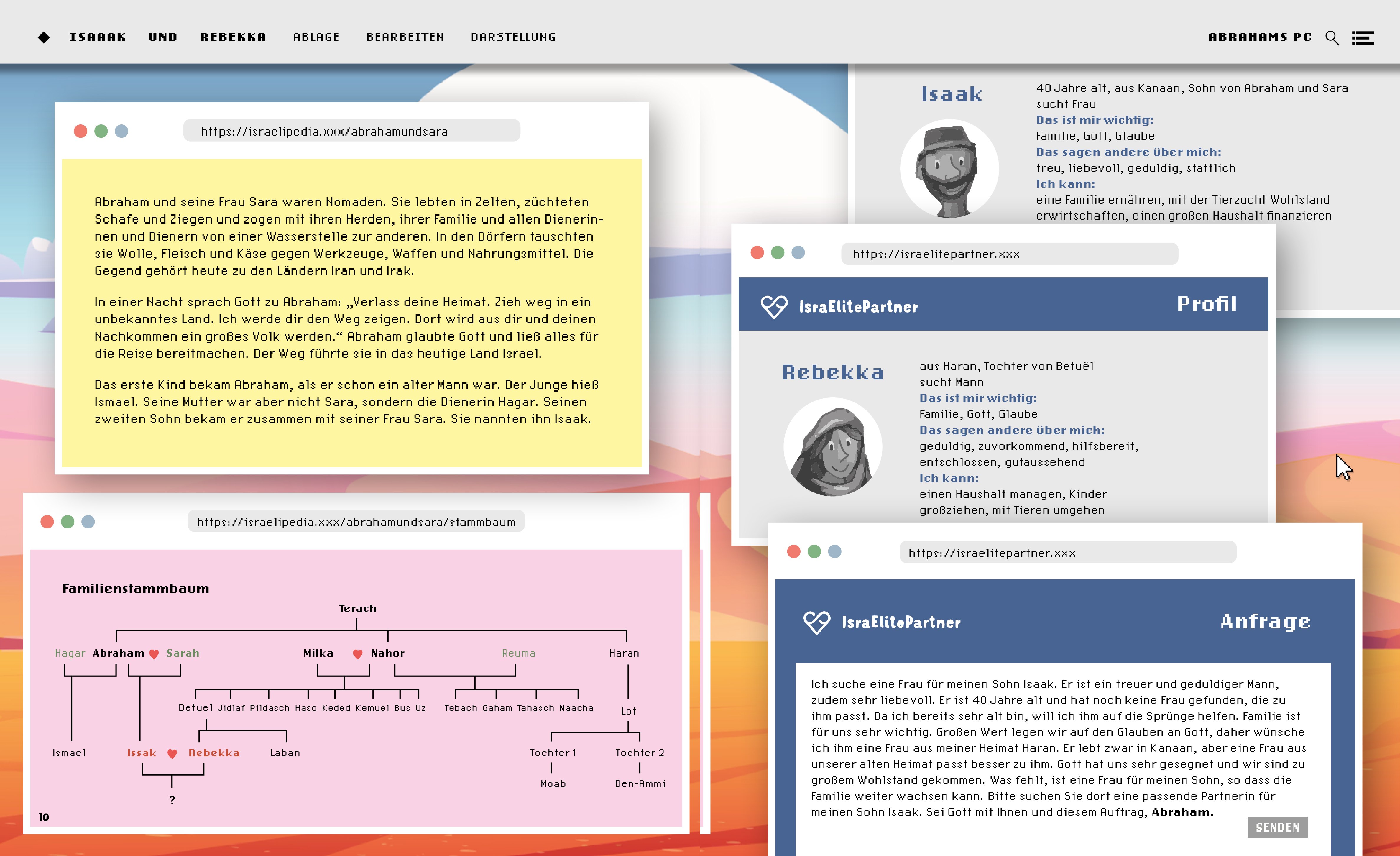»Das ist ja mega!«: Die biblischen Erzählungen von der Entstehung der Welt, den Erzeltern Abraham und Sara, Isaak und Rebekka und den Zwillingsbrüdern Jakob und Esau, von Josef und seinen Brüdern, von Mose und Rut, von Debora und Simson, von Samuel und Saul, David und Jonatan, Salomo und Ester sind manchen Kindern auch heute noch bekannt. Andere können mit diesen Geschichten aus der Bibel nicht mehr viel anfangen.