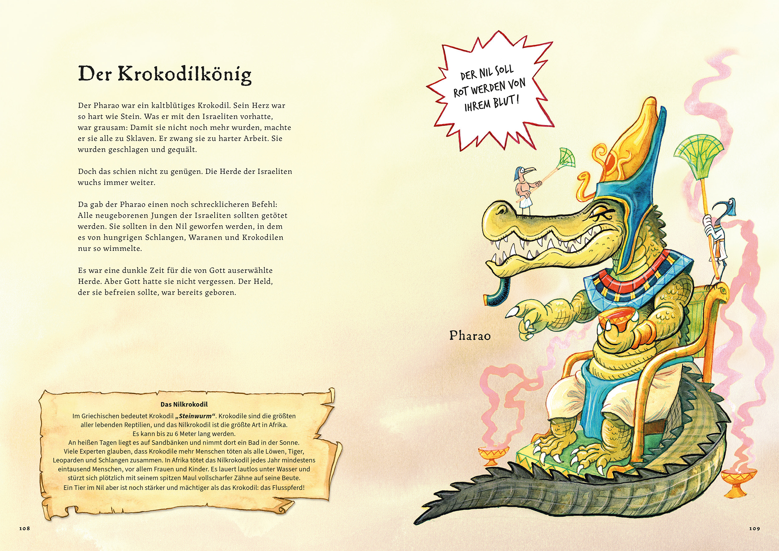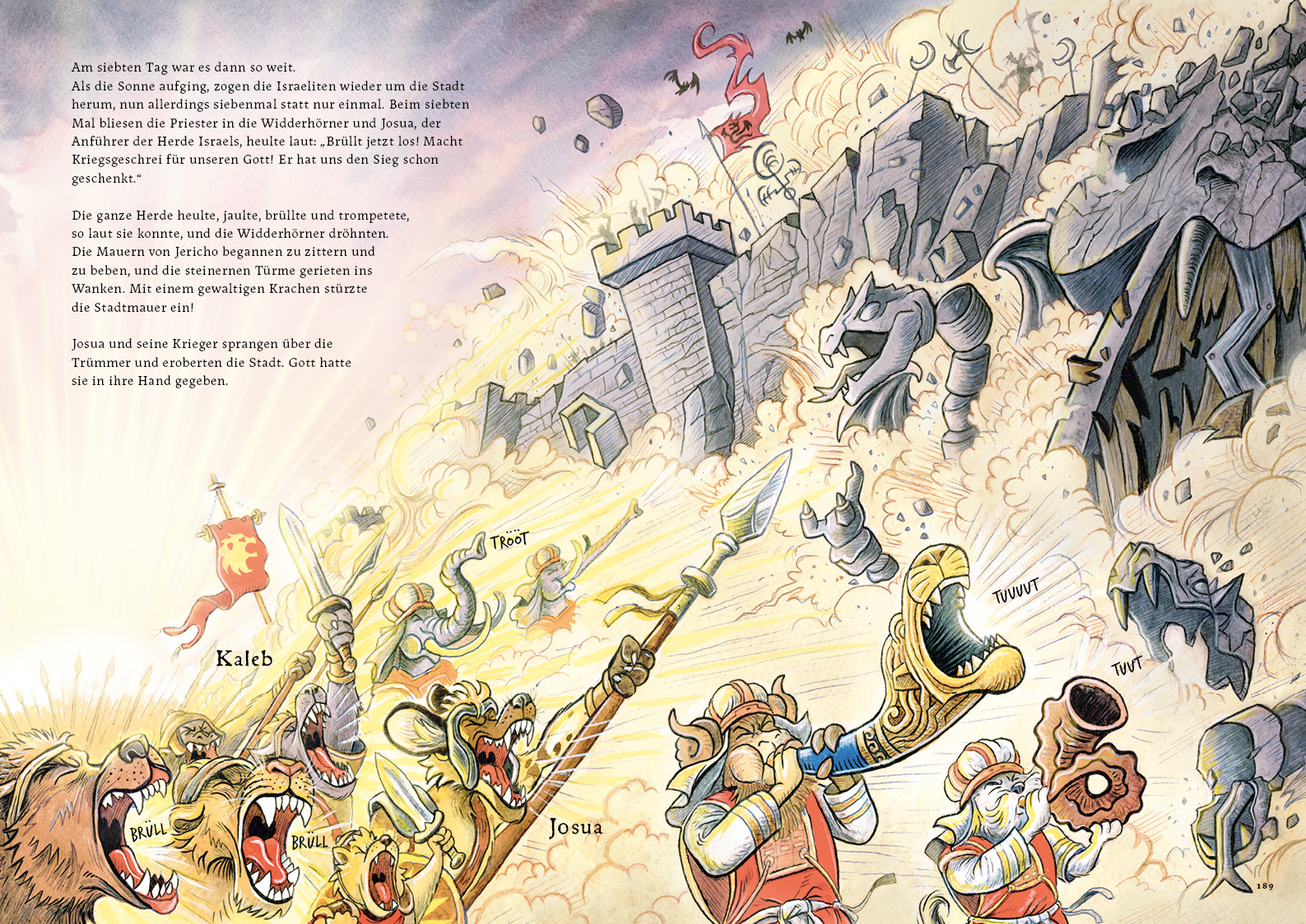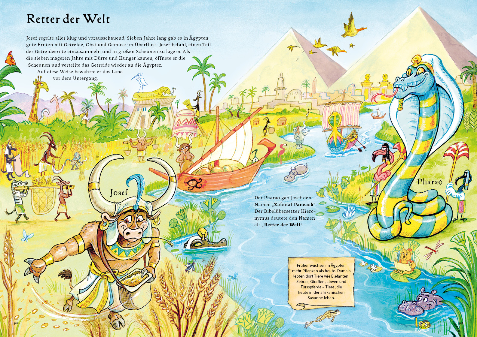 Die großartigen Illustrationen und die lebendige Erzählung nah am Bibeltext ermöglichen einen einzigartigen Zugang zu der größten Geschichte aller Zeiten. Im ersten Band »Der Löwe von Juda – Die Reise ins versprochene Land« geht es um die Erschaffung unserer wunderbaren Welt, die wechselvolle Familiengeschichte des Ochsen Josef, das aufregende Abenteuer von Nilpferd Mose und seinem Nachfolger, dem Wolf Josua und viele weitere Geschichten. Die Reise in das biblische Abenteuer kann beginnen.