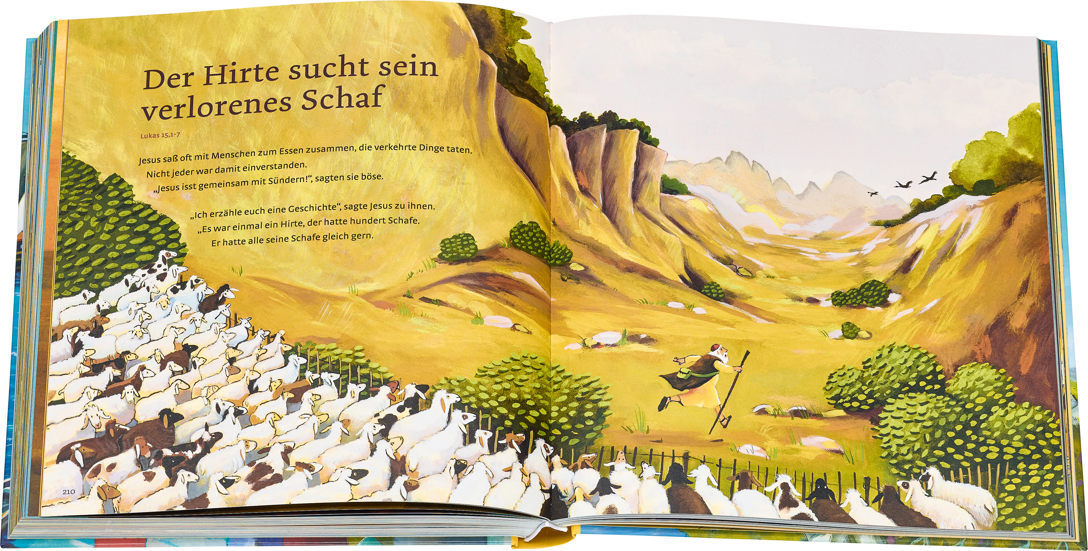 Dieser außerordentlich erfolgreiche Titel, der bereits 2015 mit dem Christlichen Buchpreis für die beste Kinderbibel prämiert wurde, zeichnet sich aus durch die sehr einfühlsame und lebendige Nacherzählung von Tanja Jeschke und die besonders farbenfrohen Illustrationen von Marijke ten Cate, in denen Zwischenmenschliches – Beziehungen und Gefühle – besonders gut sichtbar werden.