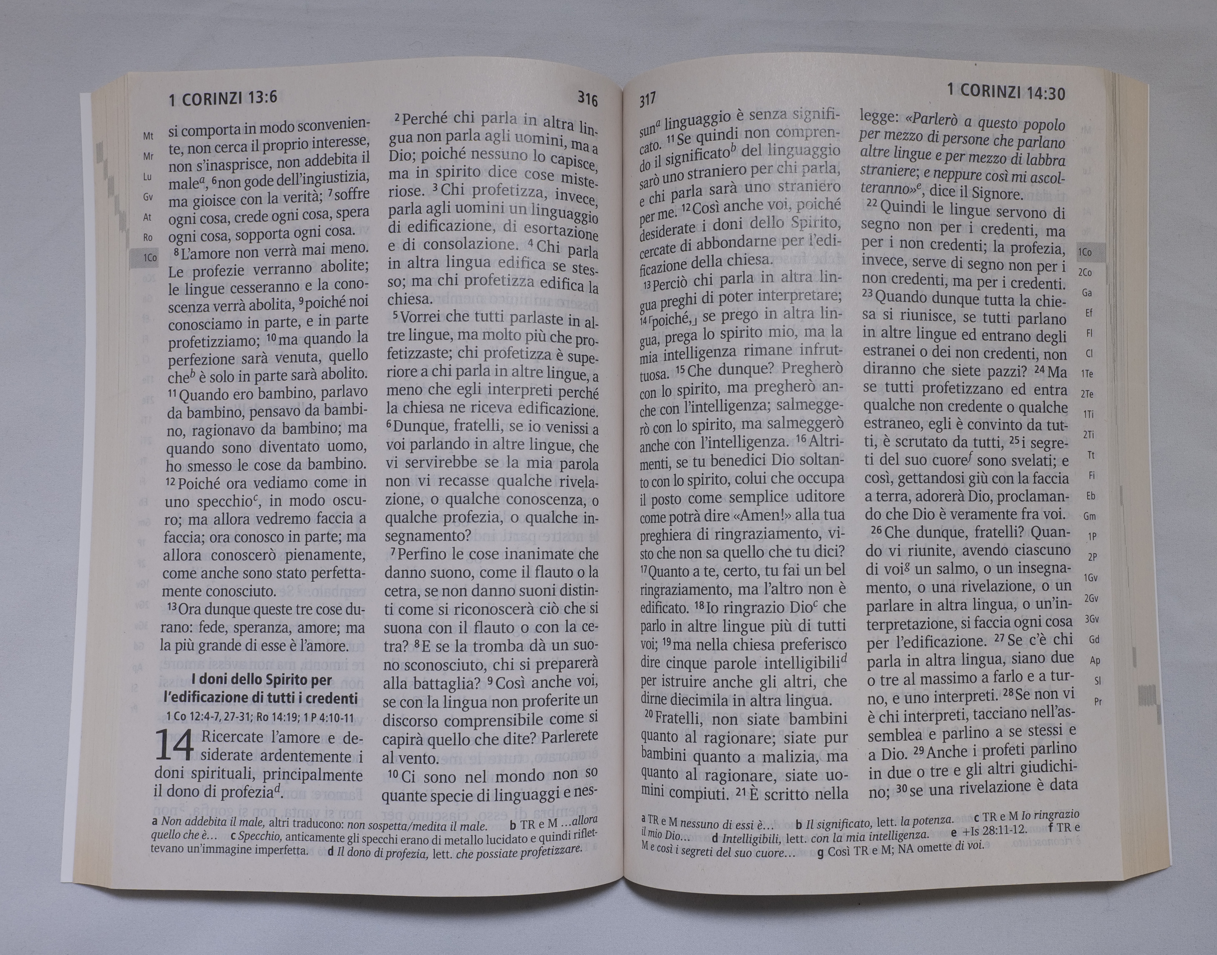 Die Ausgabe des Neuen Testaments in traditioneller Übersetzung ist einspaltig.