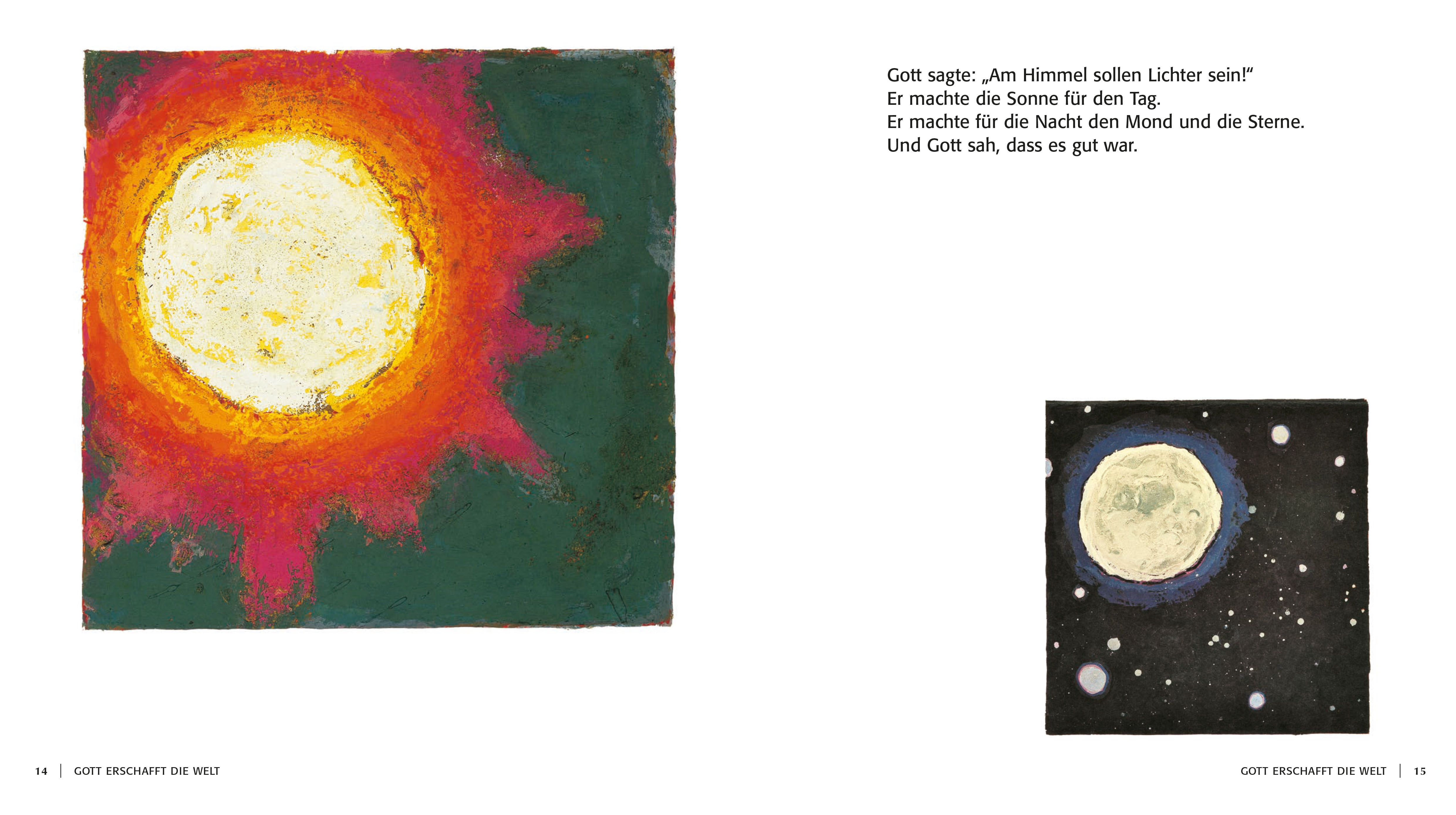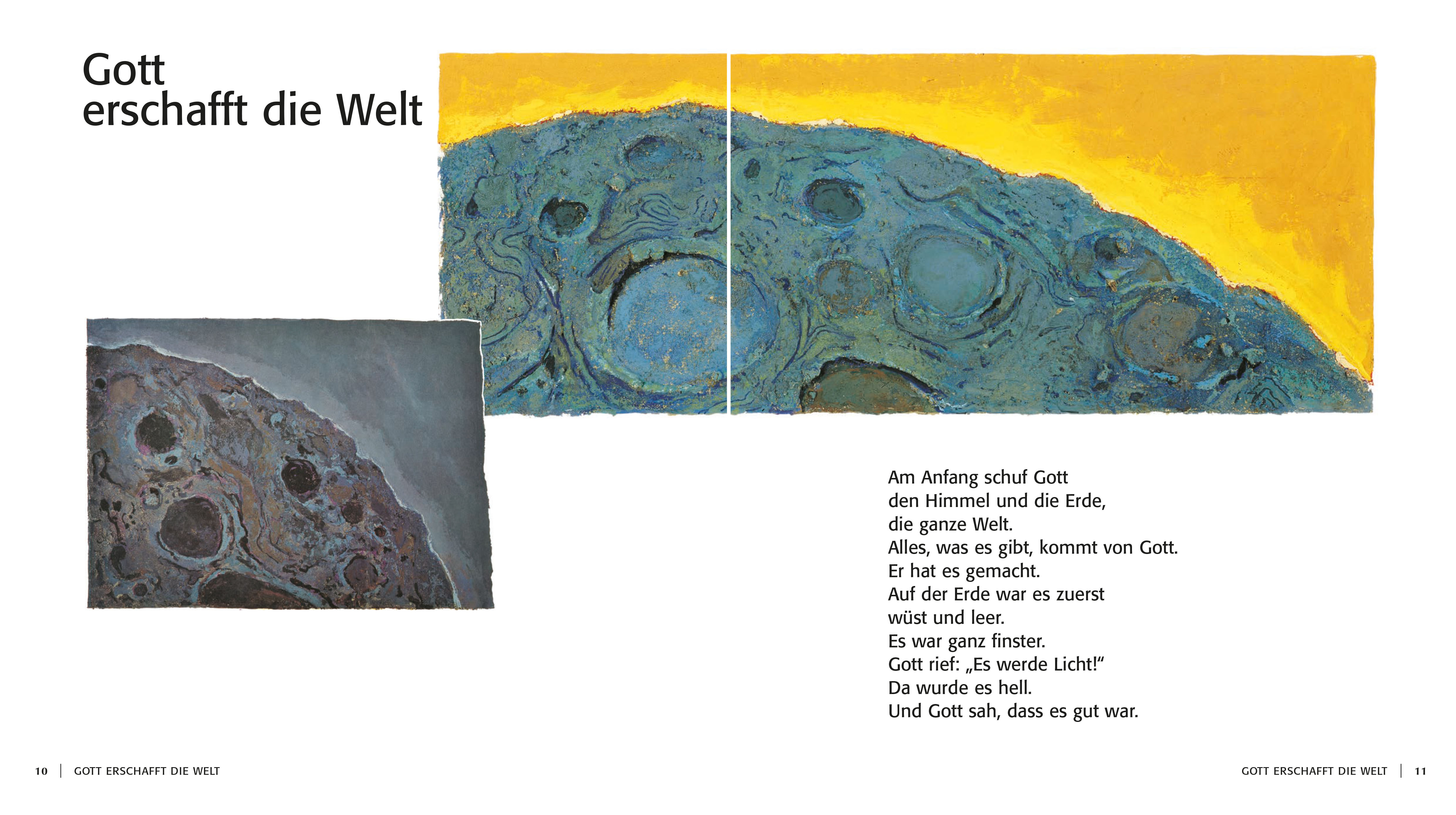 In diesem Band sind die 28 einzelnen biblischen Bilderbücher des Künstlers zusammengefasst. Auf diese Weise ist eine Kinderbibel entstanden, die ganz von den Bildern lebt. Die begleitenden Texte können deshalb sehr knapp gehalten werden. Sie sind möglichst einfach formuliert und eignen sich zum Vorlesen wie zum Selberlesen für Lesenanfänger. Neben kurzen, in sich geschlossenen Einzelgeschichten (z.B. Jesus und der Sturm) enthält das große Bilder-Bibelbuch auch umfangreichere Zusammenhänge, die dann teilweise in geraffter Form wiedergegeben werden (wie etwas bei Josef oder David). Hier kann es für das Verständnis hilfreich sein, wenn die Textstellen in der Bibel nachgelesen werden. Auf diese Weise lassen sich manche Fragen beantworten, die vielleicht von den Kindern gestellt werden. Im Inhaltsverzeichnis sind zu jeder Geschichte die Bibelstellen angegeben. Zusätzlich finden sich im Anhang "Hilfen zum Verständnis" für jede einzelne Geschichte.